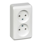 Розетка двойная 2П открытой установки IP20 10А 250В (керамика) белая "Ладога" TDM (кр.10шт)