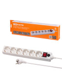 Сетевой фильтр СФ-06В выключатель, 6 гнезд, 5 метров, с/з, ПВС 3х0,75мм2 10А/250В белый TDM (кр.1шт)