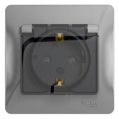 ЭТЮД IP44 О/У РОЗЕТКА с заземлением со шторками 16А 250В, СЕРЫЙ, Россия