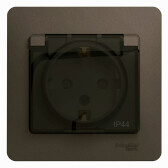 GLOSSA РОЗЕТКА с заземлением со шторками с крышкой, в сборе,16А IP44,ШОКОЛАД