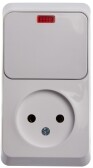 ЭТЮД О/У БЛОК: РОЗЕТКА без заземления + ВЫКЛ. 1-кл. с подсв., БЕЛЫЙ, Россия (кр.1шт) C3(5)_Отгрузка из Москвы