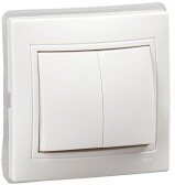 11А-1204-01 ЭРА Выключатель двойной, 10АХ-250В, ОУ, Эра Эксперт, Al+Cu, белый (16/160/2880) (кр. 1шт)