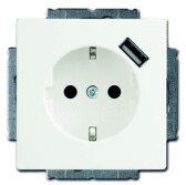Розетка Schuko с устройством зарядным USB, 20 EUCBUSB-84-500, Future белый(давос), 16А, 700 мА, электронная защита от перегрузки и КЗ, безвинтовые клеммы, защитные шторки, (кр.1шт)