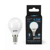 Лампа Gauss Шар 6.5W 550lm 6500K E14 LED 1/10/100