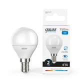 Лампа Gauss Basic Шар 7,5W 690lm 4100K E14 LED 1/10/100