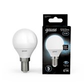 Лампа Gauss Basic Шар 5,5W 525lm 4100K E14 (3 лампы в упаковке) LED 1/40