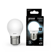 Лампа Gauss Шар 6.5W 550lm 6500K E27 LED 1/10/100