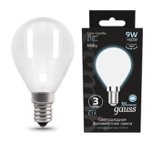 Лампа Gauss Filament Шар 9W 610lm 4100К Е14 milky LED 1/10/50