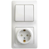 GLOSSA БЛОК: РОЗЕТКА с зазем. со шторками+ 2-клавишный ВЫКЛЮЧАТЕЛЬ БЕЛЫЙ