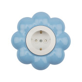 Розетка одноместная HAPPY Цветок с/у, с/з, со шторками, белая/голубая KRANZ (кр. 1 шт)