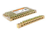 Шина PEN "ноль-земля" (8х12мм) 14 отверстий латунь крепеж по краям розничный стикер EKF PROxima (кр. 200 шт)