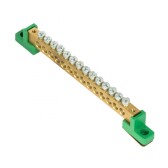 Шина "0" PE 8x12мм 14 отверстий латунь с контактной пластиной 2 зелёных угловых изолятора EKF PROxima (кр. 360 шт)