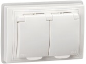 BLANCA С/У IP44 РОЗЕТКА двойная с заземл. со шторк.,с крышками, 16А, 250В, БЕЛЫЙ