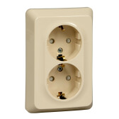 ЭТЮД О/У двойная РОЗЕТКА с заземлением со шторками 16А 250B, КРЕМОВЫЙ, Россия