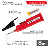Паяльник с керам. нагревателем, серия МИНИ, 8Вт, 4,5В, питание от 3 бат. АА, блистер REXANT (кр. 1 шт)