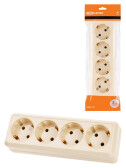 Розетка 4-х местная горизонтальная 2П открытой установки IP20 10A сосна "Ладога" TDM (кр.6шт)