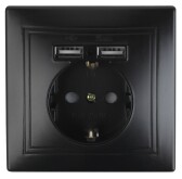 Розетка Intro Plano 1-410-05 с зезем. 2P+E Schuko со шторками, 16А-250В + 2хUSB 5В-2,1А, IP20, аналог Б0044578