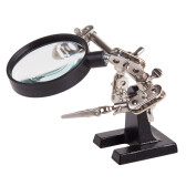 Держатель для пайки многофункциональный ДПМ, 2 зажима "крокодил", лупа с LED подсв., 3хААА, "Алмаз" (кр.1шт)