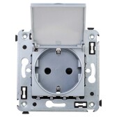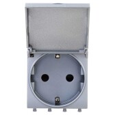 Розетка с крышкой модульная, 2P+E, с з/ш, "Avanti", "Закаленная сталь", 2 модуля(кр.1шт)