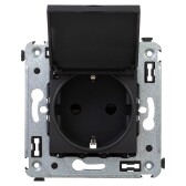 Розетка с крышкой модульная, 2P+E, с з/ш, "Avanti", "Черный матовый", 2модуля(кр.1шт)