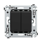 Переключатель двухклавишный в стену, "Avanti", "Черный матовый"(кр.1шт)