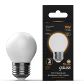 Лампа Gauss Filament Шар 9W 590lm 3000К Е27 milky LED 1/10/50