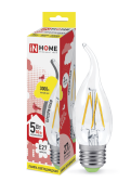 Лампа светодиодная LED-СВЕЧА-deco 5Вт 230В Е27 3000К 450Лм прозрачная IN HOME (кр.50шт)