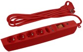 SFU-5es-2m-R Сет.фильтр ЭРА (красный) с заземл, 3x0.75мм2, со шт, с выкл, 5гн+2xUSB, 2м, кор (20/200 (кр.20шт) | Б0002375