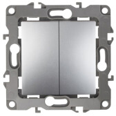 12-1004-03 ЭРА Выключатель двойной, 10АХ-250В, IP20, без м.лапок, Эра12, алюминий (10/100/2500) (кр. 1шт)