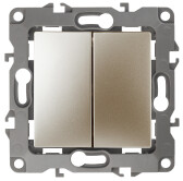 12-1004-04 ЭРА Выключатель двойной, 10АХ-250В, IP20, без м.лапок, Эра12, шампань (10/100/2500) (кр. 1шт)