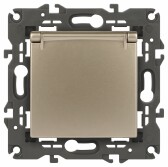 14-2103-04 ЭРА Розетка 2P+E Schuko со шторками с крышкой, 16A-250В, IP20, Эра Elegance, шампань (10/ (кр. 1шт)