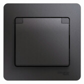 GLOSSA РОЗЕТКА с зазем. со шторками с крышкой,IP20,16А, 250В, в сборе,ГРАФИТ