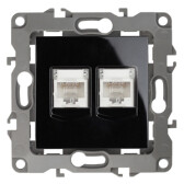 12-3108-06 ЭРА Розетка информационная двойная 2XRJ45, IP20, Эра12, чёрный (10/100/2500) (кр. 1шт)