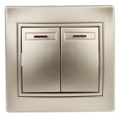 1-105-04 Intro Выключатель двойной с подсветкой, 10А-250В, IP20, СУ, Plano, шампань (10/200/2400) (кр. 1шт)