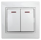 Выключатель Intro Plano 1-105-01 двухклавишный с подсветкой, 10А-250В, IP20, СУ, Plano, белый
