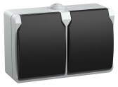 Розетка Intro Atlantic 5-204-03 двойная с заземлением 2х2P+E Schuko шторки, 16А-250В, IP54, открытой установки, серый (кр. 1шт)