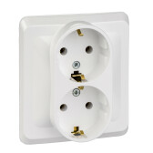 Розетка Intro Plano 1Э-205-01 с заземлением двойная 2X2P+E Schuko, 16А-250В, СУ, без лапок, белый (кр. 1шт)