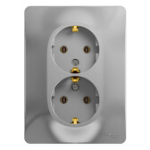 ATLASDESIGN РОЗЕТКА двойная с заземлением, 16А, в сборе, АЛЮМИНИЙ