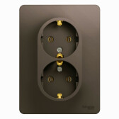 GLOSSA РОЗЕТКА двойная с заземлением, 16А, в сборе, ШОКОЛАД