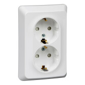 Розетка Intro Plano 1Э-208-01 с заземлением двойная 2X2P+E Schuko со шторками, 16А-250В, СУ, без лапок, белый (кр. 1шт)