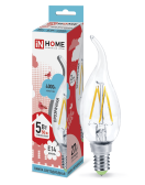 Лампа светодиодная LED-СВЕЧА НА ВЕТРУ-deco 5Вт 230В Е14 4000К 450Лм прозрачная IN HOME (кр.50шт)