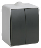 Выключатель Intro Atlantic 5-104-03 двойной, 10А-250В, IP54, открытой установки, серый (кр. 1шт)