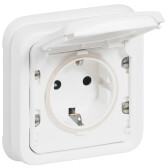 Розетка SCHUKO с заземлением, 16А / 250В, зажимные клеммы, серия Jussi, белый, наружный монтаж, IP55 (кр.1шт)