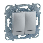 UNICA TOP ПЕРЕКЛЮЧАТЕЛЬ 2-клавишный, 2 модуля,с подсветкой, 2 х сх. 6а, АЛЮМИНИЙ (кр.10шт) C3(7) Отгрузка из Москвы