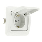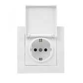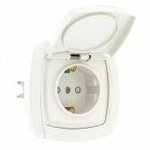 Розетка Intro Plano 1Э-203-01 с заземлением 2P+E Schuko с крышкой, 16А-250В, СУ, без лапок, белый (кр. 1шт)