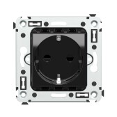 Axolute Розетка 2К+З, 10/16 А с центральным и боковыми заземляющими контактами Schuko, с защитными шторками, автоматические клеммы, цвет антрацит, немецкий стандарт (кр.10ШТ)