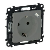 Розетка с заземлением со шторками, Levit, серый/белый (кр.1шт)
