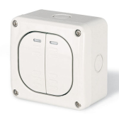 Выключатель двухклавишный для открытой установки со свет. индикацией ВС20-2-1-ГБ IP44 серия "ГЕРМЕС" (цвет клавиши: белый) (кр.12шт)